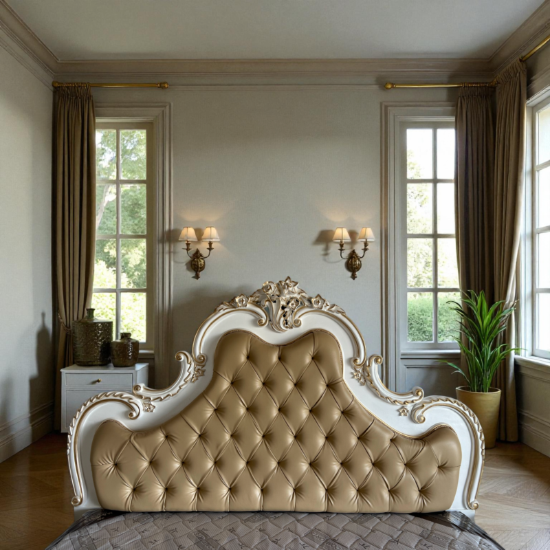 When styled in your bedroom, this luxury carved bed becomes a centerpiece of royal décor. Pair it with matching side tables, lamps, or drapes to create a classic Italian-inspired setting.
