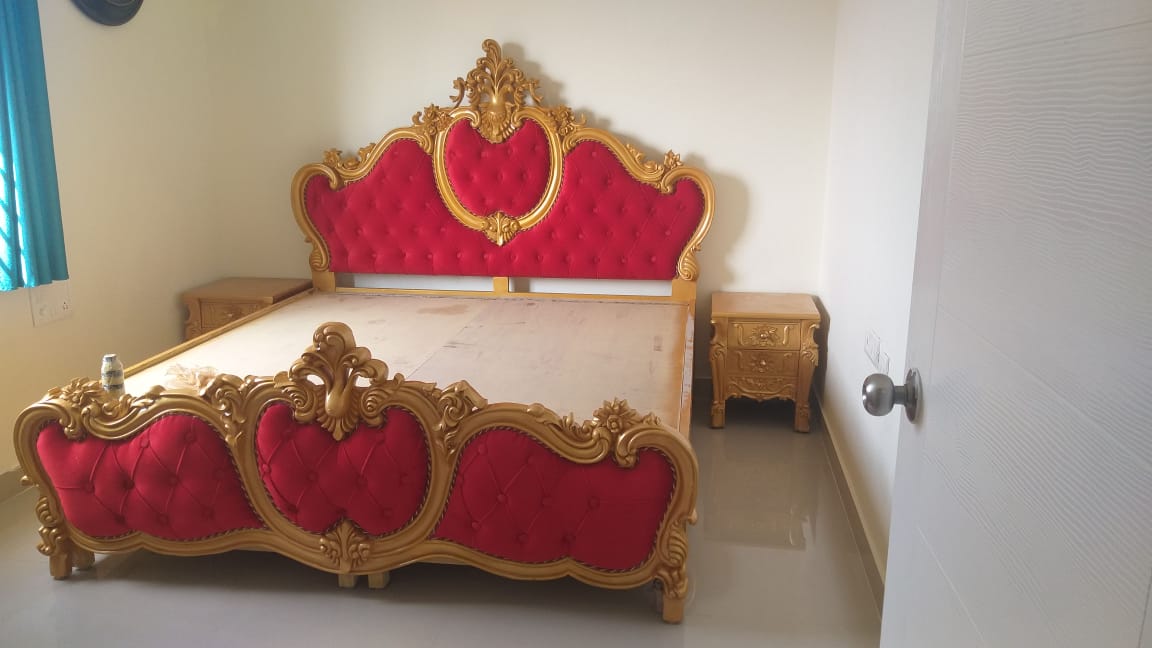 A strong quality of Golden Antique Style Bedroom furniture that is designed using prime high-quality wood. This bedroom furniture is made from teak wood. This furniture is perfect to complete the look for your home. These various sizes of the bed allow for greater comfort and space to one and all. The wood finish and the curved design make it a nice choice for those who like their bedroom stylish and comfortable.